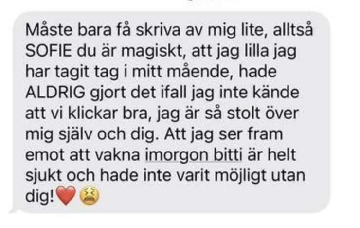 Jag heter Sofie, jag är din coach – och din nya bästa vän. Mitt mål är att hjälpa dig bli den bästa versionen av dig själv. Jag lär dig att förstå och hantera dina känslor, varför du triggas och hur ditt sinne fungerar, så att du kan göra 90 % av dina dagar till bra dagar.